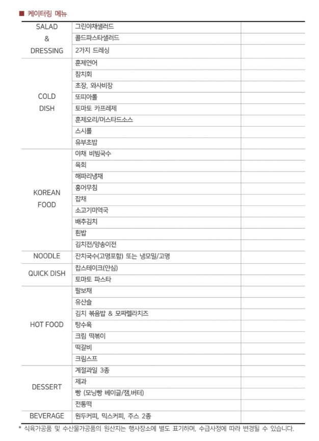 음식의 경우 아래의 표와 같이 음식이 나온다고 하네요.