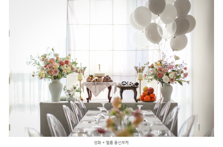 위 사진과 같이 모형을 선택할 경우 추가비용이 줄어들며 생화 및 헬륨풍선을 선택하는 경우 추가비용이 생깁니다.